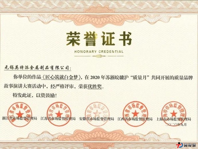 英特派先后獲得了江蘇省名牌產品,江蘇省質量標桿、無錫市質量管理優秀獎等榮譽。